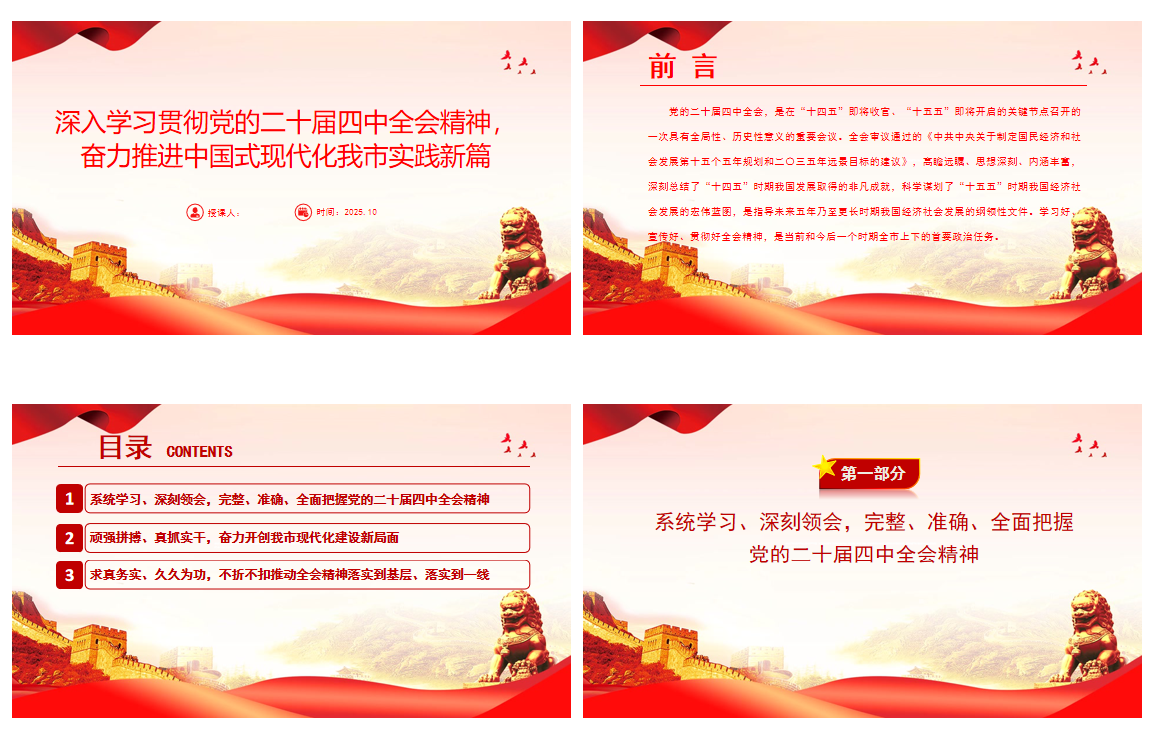 党课PPT:深入学习贯彻党的二十届四中全会精神,奋力推进中国式现代化我市实践新篇